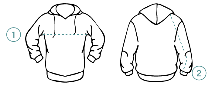 Meet vanaf de schouder tot aan het uiteinde van de mouw.